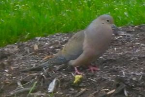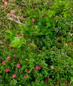 Male Cardinal browsing in the ground cover, west bank, March 28