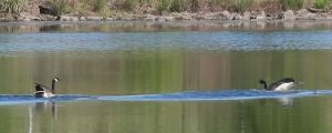 Canada Goose mating pair enjoy the quiet lake, southwest shore, March 28