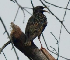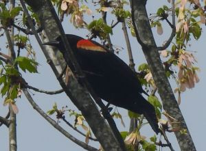 Red-winged Blackbird high in Oak, south end of lake, warm March 7