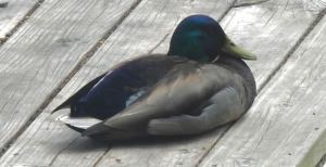 Neighbors: Mallard Mating Pair and 5 Red-Bellied Cooters share the same log, southeast shore, balmy March 10