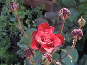 garden red rose bloom and multibuds – 1