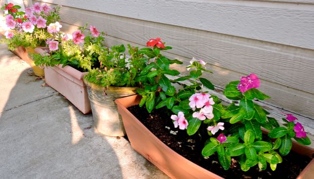 garden front walk petunias and vinca july 18 – 1