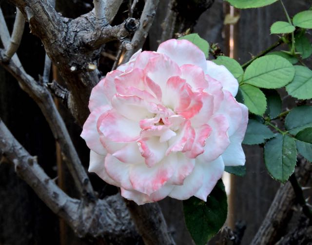 garden peace rose and bare branches jul18 – 1