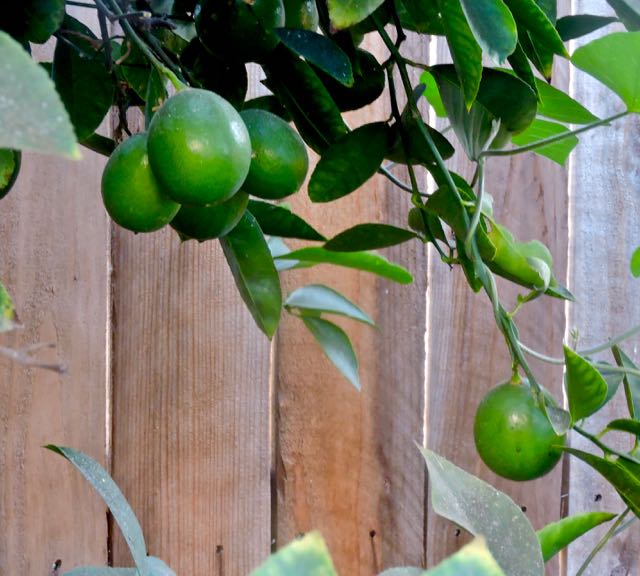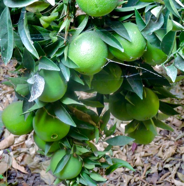 Heading to winter, the navel oranges this year are large, even if they will not be as plentiful as this past season. Size and number usually coincide: the fewer the larger and so on.