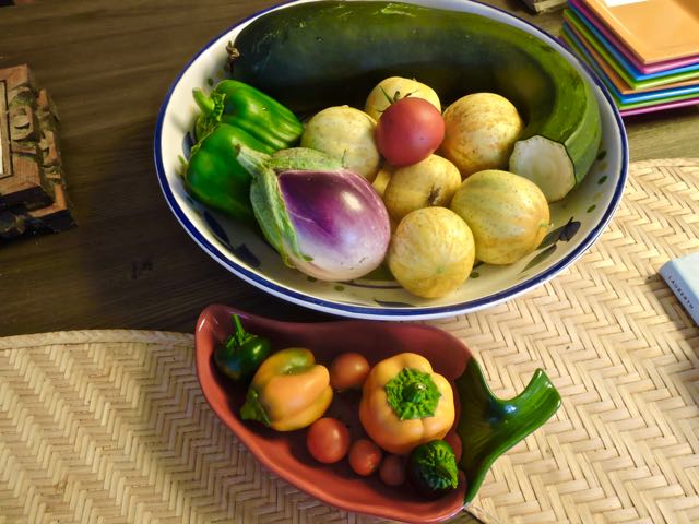 But the summer heat has persisted, with temps into the 90s and even over 100 (predicted for this weekend). So, shortened days or not, a few of the plants have refused to stop producing. And, as you know if you read this blog, I resist pulling out plants that keep thriving, even if I’m itching to move on to the next season.