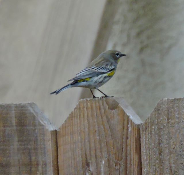 The yellow-rumped warblers make their annual autumn visit to our garden, including stops on our back fence.