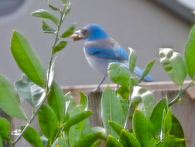Watching the meyer lemon bush from inside the orange tree
