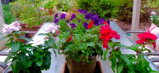 garden red blue petunias vinca veranda aug 7 2021 – 1