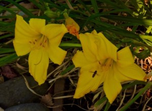 garden 3 day lilies with bee sep 24 2021 – 1
