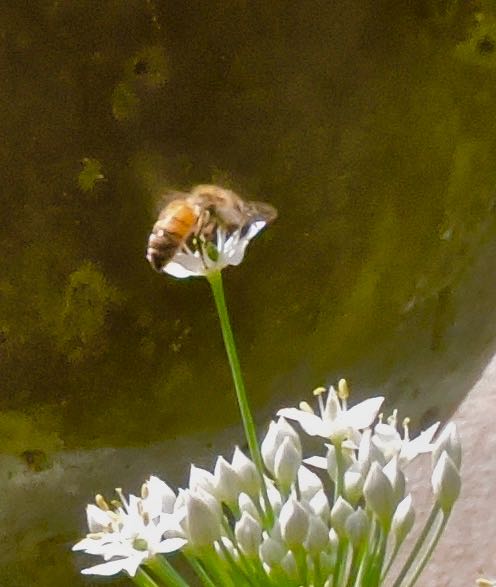 garden bee on top of chive bloom sep 2 2021 – 1