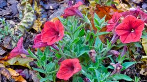 garden back red petunias in fallen leaves nov 28 2021 – 1 November 28, 2021November 29, 2021 / Chris Thaiss