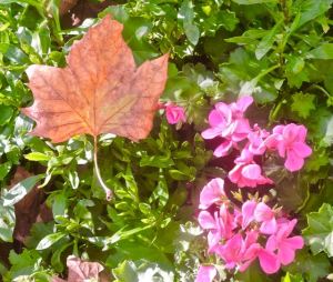 garden sycamore leaf on pink geraniums dec 11 2021 – 1 December 12, 2021December 27, 2021 / Chris Thaiss