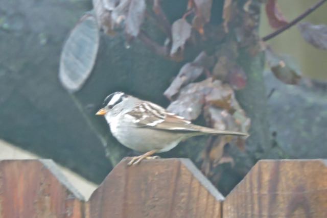 garden white-crowned sparrow on back fence by cherry plum dec 22 2021 – 1 December 24, 2021December 27, 2021 / Chris Thaiss