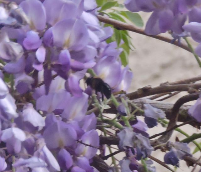 garden back bumble bee whirs in wisteria mar 22 2022 – 1