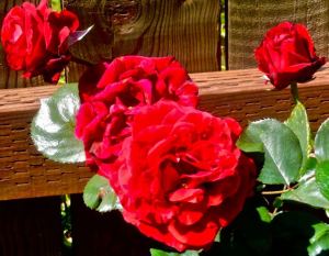garden bee inside red rose cluster back fence apr 1 2022 – 1 April 25, 2022April 28, 2022 / Chris Thaiss