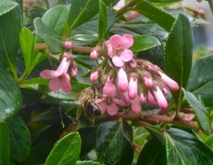 garden front bee on escallonia pink princess may 5 2022 – 1