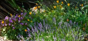 garden front purple geranium lavender poppies may 9 2022 – 1