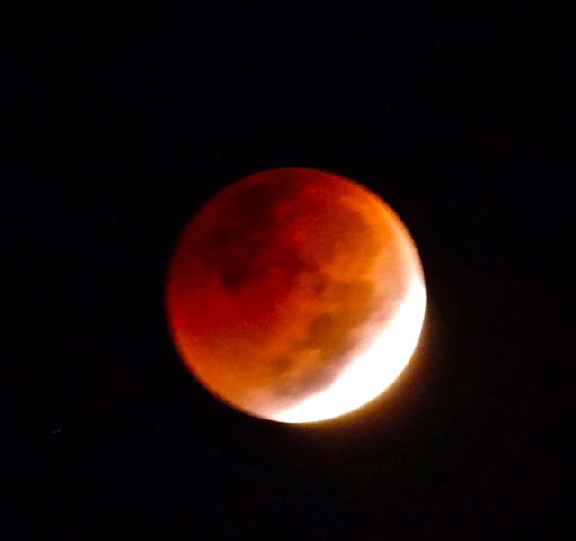 Beside the tiny lake, we snap the changing moon: