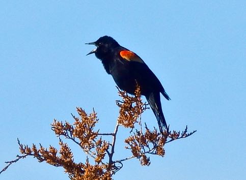 lake cameron red winged blackbird in treetop song west side Mar 21 2023 – 1 March 22, 2023March 28, 2023 / Chris Thaiss