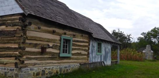 18th century log houses and cornpatch, Conococheague Institute, Welsh Run, PA, Sept. 8