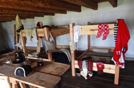 Barracks at restored Fort Frederick made to resemble prison housing for British soldiers in the US war for independence, 1777-81