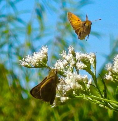 Two Virginia skipper butterflies in boneset flowers on the east bank, Sept. 14