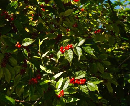 Profuse ripe berries on amur honeysuckle on the east bank, Sept. 15