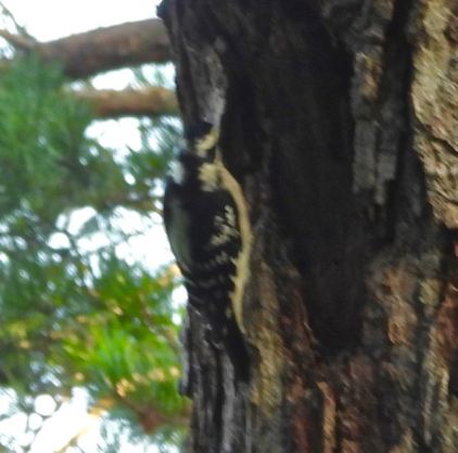 A downy woodpecker on the trunk of the same tree, Sept. 4