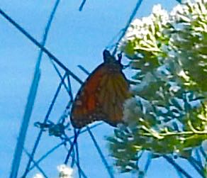 Our first sighting of a monarch, in shadows amid the boneset flowers on the northwest bank, Sept. 15 (see story, below)