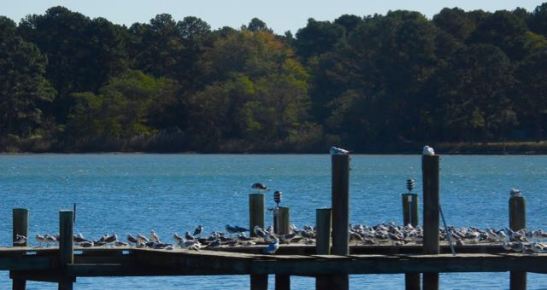 Herring gulls on the wharf, Choptank estuary, Tilghman Island, Oct. 23