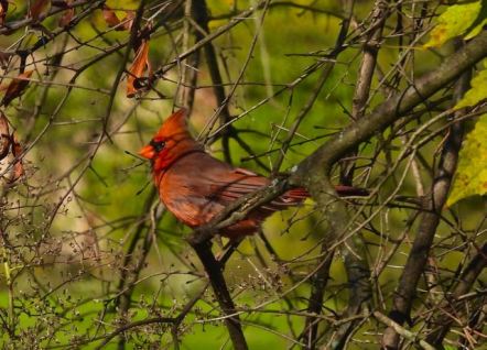 A male Cardinal is always showy, and certainly always in the fall displays, southeast bank, Oct. 25