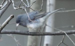 Dark-eyed Junco in Downy Serviceberry on the Southeast side, Valentine’s Day