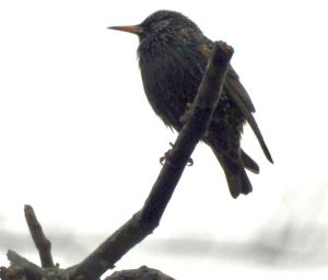 European Starling atop the dead White Oak on the east bank, February 16
