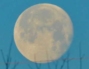 The February “Snow Moon” setting west of the lake, Valentine’s Day