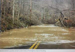 Flooding brings state of emergency to counties in Southwest Virginia, February 17. (Kenzie Hagood photo, WJHL, TriCities)