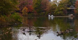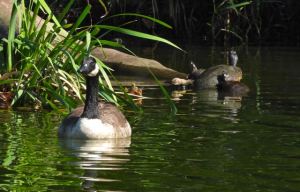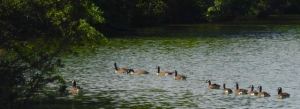 Day 3 sighting: Two Geese families and friends on the southwest side of the lake, 10 chicks in all! April 24
