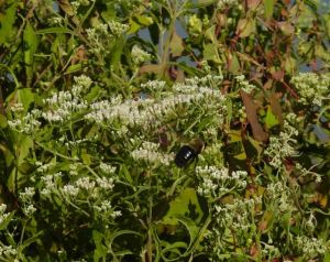 Lake Cameron: Bumblebee flies and feeds among the pillowy White Azaleas, west side, April 20