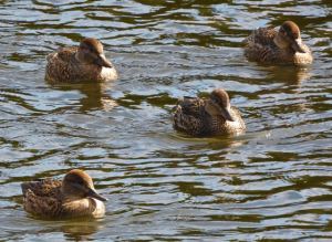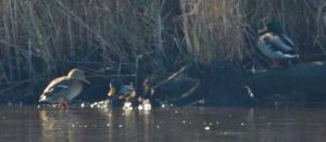At nearby Lake Newport, five Mallards, four of them males, on the dam outlet structure, April 18