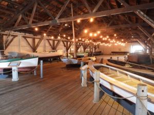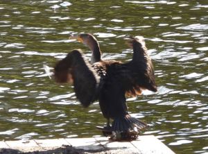 Cormorant pair on and beside the foot-powered boats that take residents silently over the waters, Earth Day, April 22