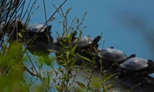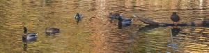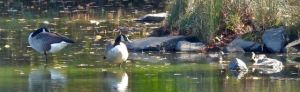 Four Canada geese and three Red-bellied Cooters enjoy the southeast cove on a cool afternoon, April 20