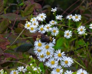 One of our first bumblebees feeds on the nectar of the newly-blooming White Azaleas beside the gazebo on the west shore, April 20