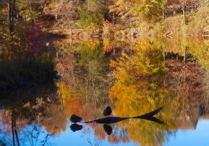 We’re also completely acculturated to the noise of internal combustion engines, which you will hear on many of the videos of birds and scenery in this blog, as cars and trucks pass by on the surrounding highways, and as jets fly to and from Dulles Airport. As pretty as the lake looks, the birds, squirrels, and turtles have to adjust to the noise of all the surrounding engines, if they can. The birds often have to work hard for their calls to reach above the steady din; if they can’t, they die trying.