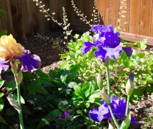 garden back purple and purple gold irises alum root 4 13 20 – 1