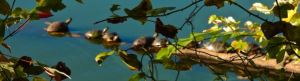 Two Red-bellied Cooters on log, west shore of our lake, hot noon, July 4