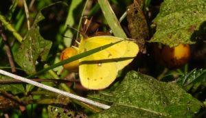 Orange Sulphur butterfly on Indian Hemp, north end path by our lake, noon, July 4