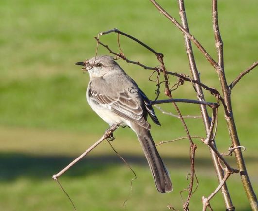 From a young branch at the north end, Mockingbird listens for calls, March 24