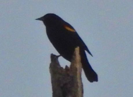 On the day following the recording, March 15, I saw this Red-winged Blackbird from about 200 yards away atop a dead oak on the east bank.