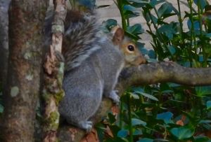 Grey Squirrel amid leaves, southeast path, sunny November 23